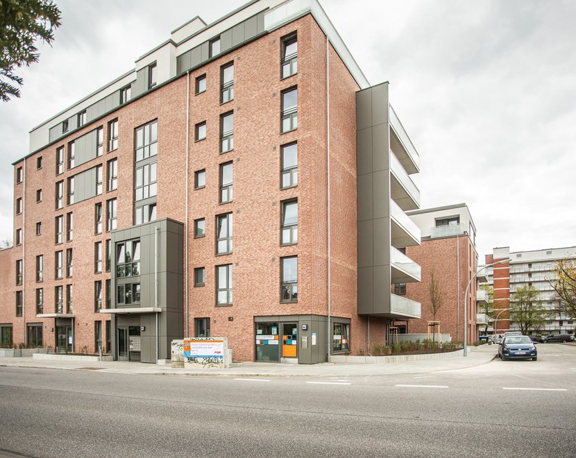 Der Neubau (2016) am Harburger Binnenhafen bietet Platz für Menschen mit geistiger Behinderung in vier Wohnungen. Der gesamte Gebäudekomplex hat mehrere Innenhöfe, Laubengänge und Dachterrassen. Die…