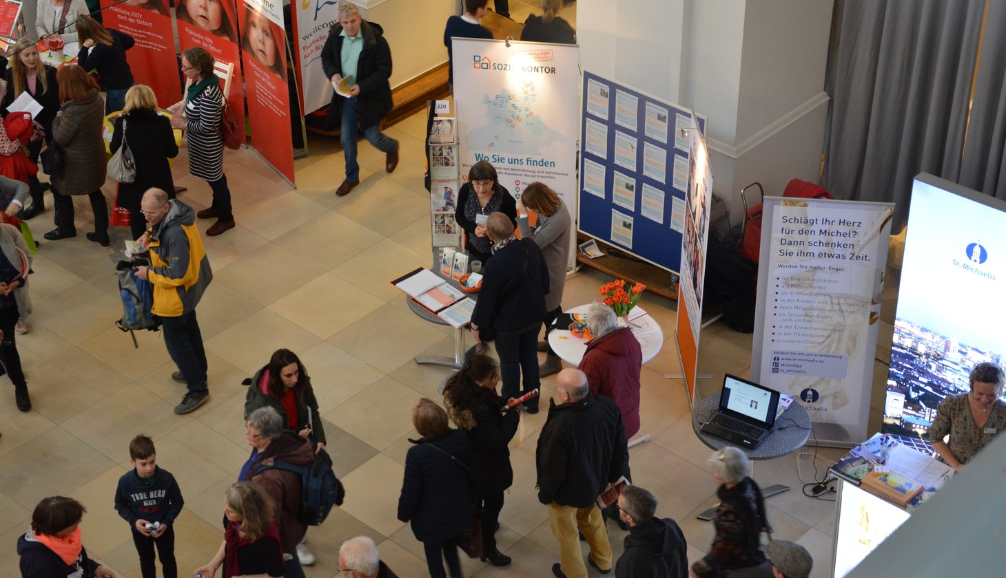 Die Handelskammer Hamburg war auch in diesem Jahr wieder gut besucht. Rund 4000 interessierte Besucher*innen waren in den prächtigen Räumlichkeitender der "Hamburger Börse" auf der Suche nach einem passenden freiwilligen Engagement. Das Sozialkontor war einer von den 150 Austellern.