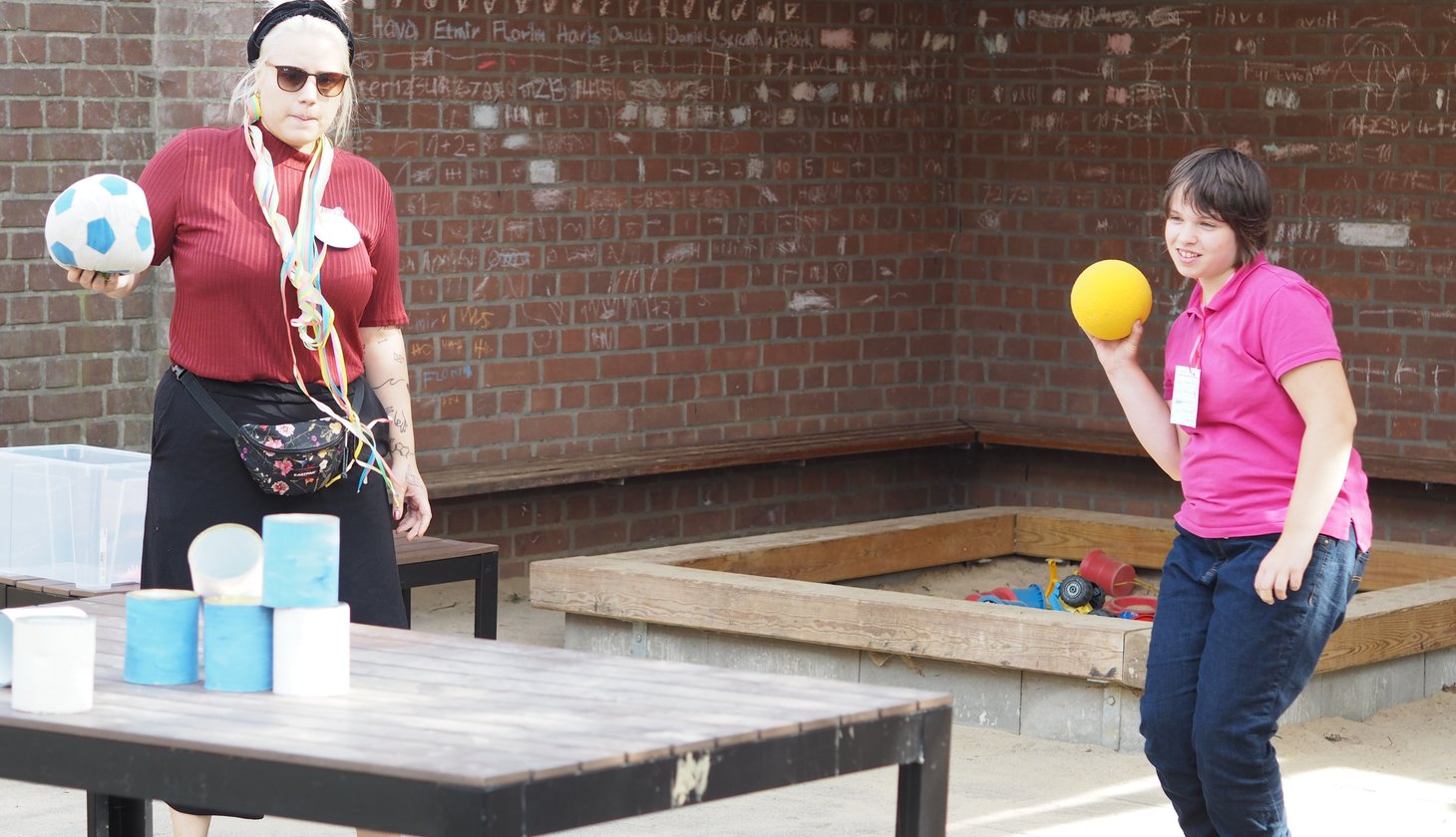 Fünf Jahre Hortbetreuung in der Schule am Kielkamp in Bahrenfeld mit dem Förderschwerpunkt geistige Entwicklung – das haben wir gefeiert! Bei hochsommerlichen Temperaturen verbrachten wir am Freitag, den 23. August mit rund 50 Kindern, Eltern, Mitabeitenden und Gästen einen kurzweiligen Nachmittag im Gebäude und auf den Außenflächen der Schule. Auf dem Programm standen unter anderem Dosenwerfen, Topfschlagen und das Spiel „Reise nach Jerusalem“. Bei Kaffee und von unserem Team und den Kindern selbst gebackenem Kuchen sowie kalten Getränken und vegetarischen Hotdogs gab es außerdem Gelegenheit zum Klönen und Kennenlernen. Einen Überblick über die Hortarbeit der vergangenen fünf Jahre bot eine Ausstellung bunter Collagen, liebevoll gestaltet von einem Mitarbeiter.