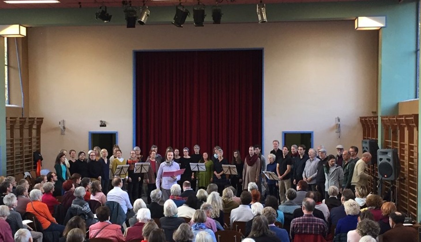 Bei ausgelassener Stimmung haben der Mahlhaus-Chor und der Weltmusik-Chor ein musikalisches Potpourri mit Liedern aus den verschiedensten Ecken der Welt zum Besten gegeben. Insbesondere bei den deutschen Liedern, wie "Hoch auf dem gelben Wagen" oder "Die Gedanken sind frei" haben die rund 150 Zuhörer*innen aus voller Kehle mitgesungen. Frank Kunz, Chorleiter des Mahlhaus-Chors, hat durch den Nachmittag geführt. Für den Mahlhaus-Chor war das sogar der erste Auftritt überhaupt. Unterstützt vom Weltmusik-Chor Hamburg, unter der Leitung von Nathaniel Damon, wurde das Publikum mit Liedern, wie „Freedom is coming“ aus Südafrika, auch bei den fremdsprachigen Liedern zum Mitgesingen angeregt.