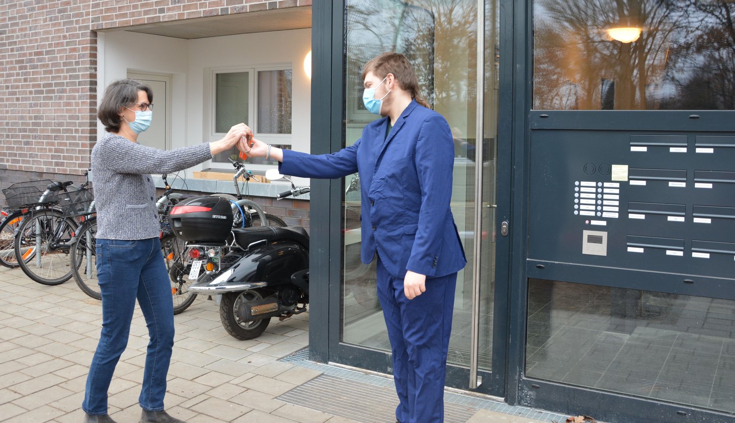 Kartons auspacken, Bilder aufhängen und Habseligkeiten einräumen – die Mieterinnen und Mieter der beiden Wohnassistenzgemeinschaften im neu gebauten Quartier Saselberg sind emsig dabei, sich in ihrem neuen Reich einzurichten. Acht Menschen mit Assistenzbedarf im Alter von 20 bis 60 Jahren zogen Anfang Dezember in die beiden rund 130 Quadratmeter großen Wohnungen im Petunienweg. „Das Zusammenleben klappt sehr gut, mir gefällt es super hier und ich habe viele neue Leute kennengelernt“, sagt der 21-jährige Mieter René Halberstadt.