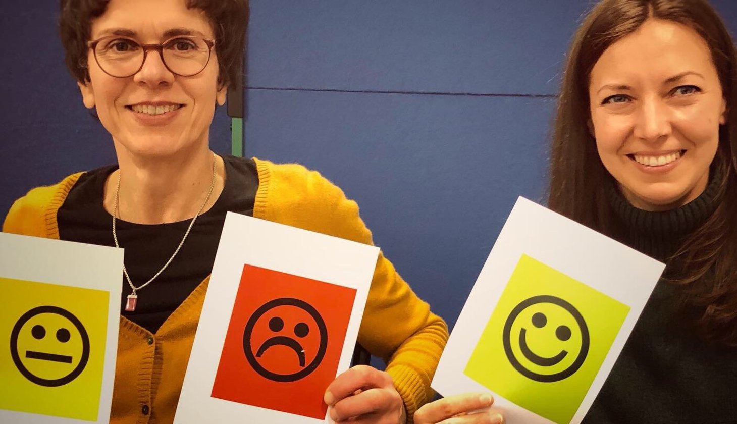 Am Ende des Workshops fragte die Dozentin in die Runde, ob die Teilnehmenden Spaß hatten und etwas Neues erfahren haben. Als Antwort hielten alle eine Karte mit einem grünen Smiley hoch – und drückten damit ihre Zustimmung aus.